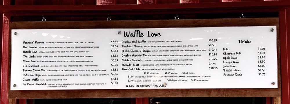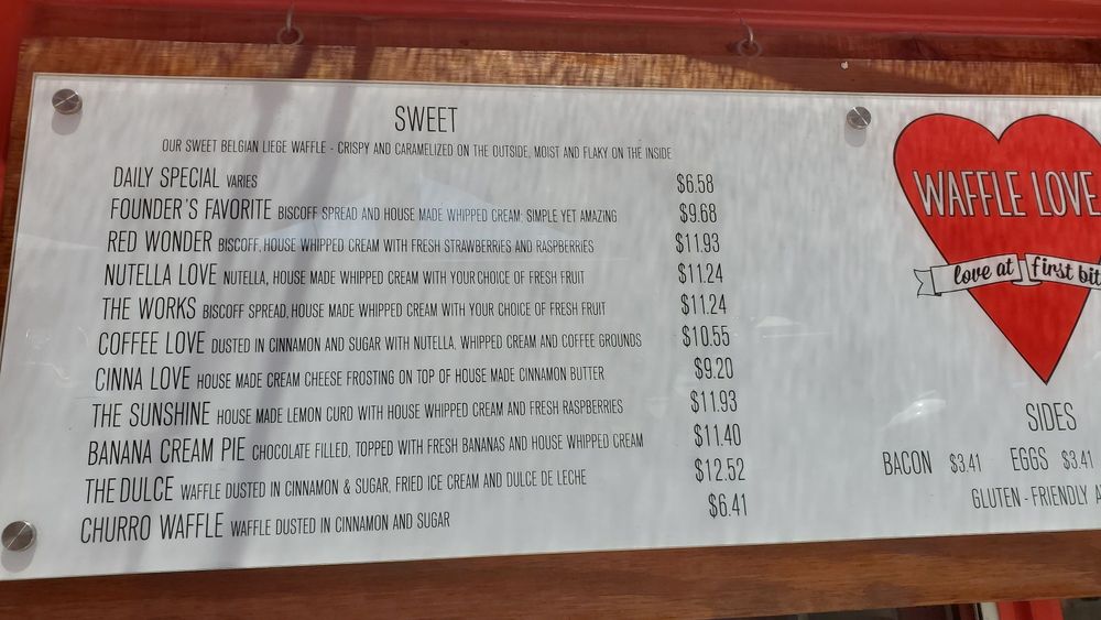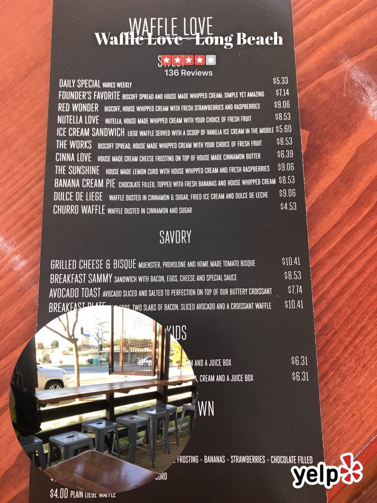 Introducing Waffle Love, located in Long Beach, CA, this hip and trendy spot offers a unique menu of both savory and sweet Belgian liege and croissant waffles. From the Founder's Favorite with Biscoff spread to the savory Chicken and Waffles, there is something for everyone. Customers rave about the delicious flavors and the outdoor seating area, making it a great spot to enjoy a meal with friends or family. While some have mentioned pricing concerns and wait times, the overall consensus is positive, with many patrons recommending Waffle Love for a tasty brunch or dessert option. Don't miss out on the Red Wonder or the Breakfast Sammy for a delightful waffle experience at this popular eatery.